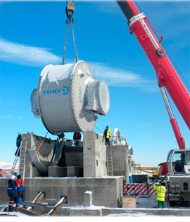 Parte de nuestros molinos de bolas están montados sobre chasis de acero y concreto. Nuestros molinos están diseñados para un proceso de molienda en seco o húmedo. Fabricado en planchas de acero estructural. Forros fabricados en acero al manganeso resistentes al impacto y abrasión.