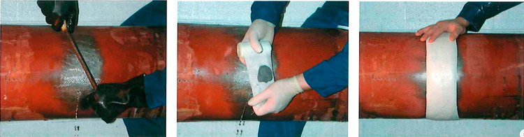 Si se utiliza la cinta de fibra de vidrio con alto contenido de uretano STOP IT® en combinación con FIX STIX™ se aumenta en gran medida la capacidad de reparación. Una persona, sin herramientas especiales y sin trabajar en caliente puede aplicar este sistema de reparación local en minutos.